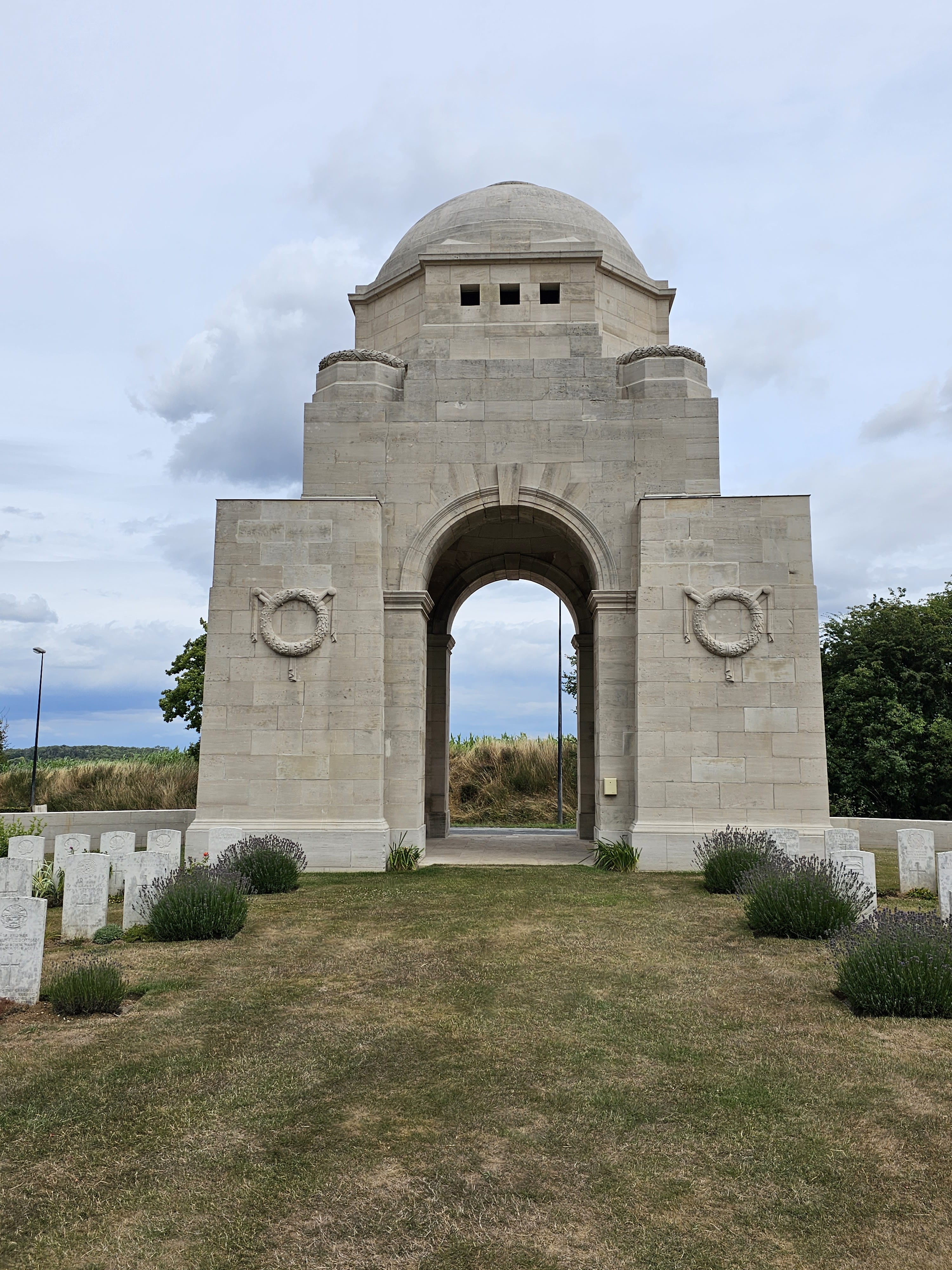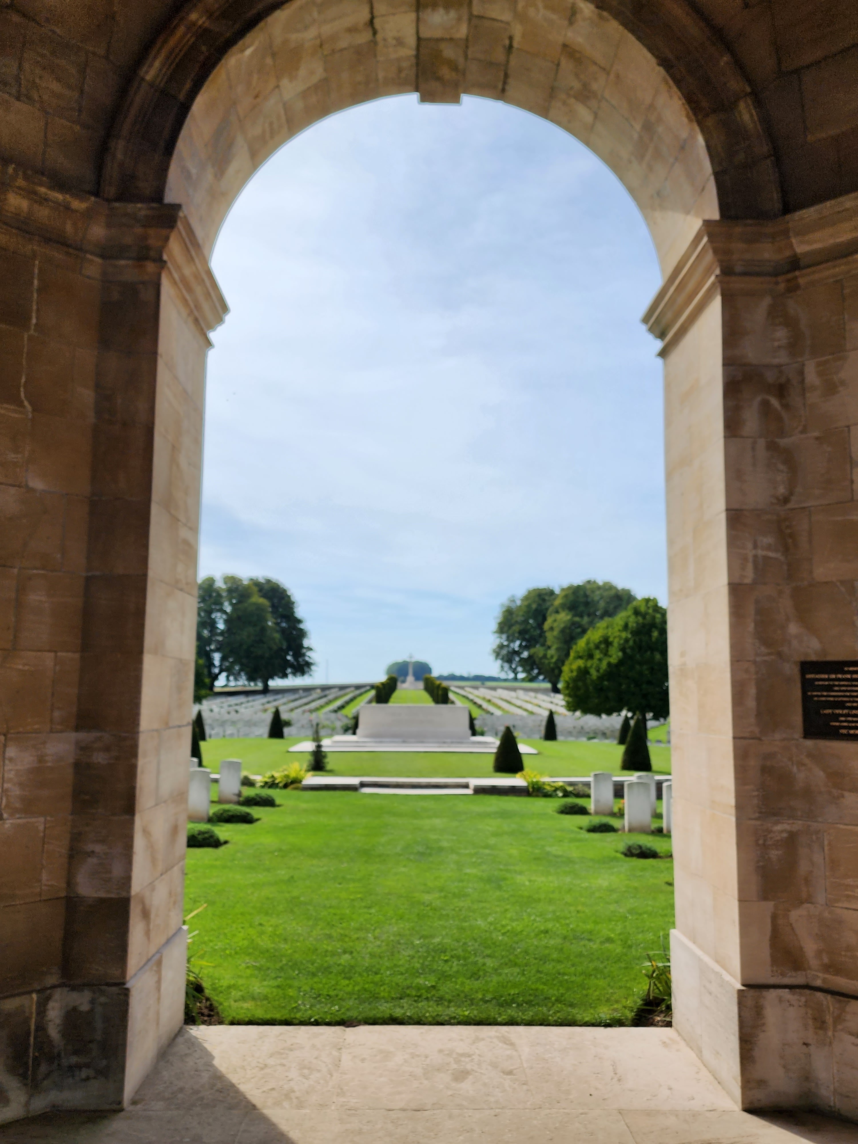 Cabaret Rouge. Sans doute le plus beau de tous les cimetières de guerre du Commonwealth. Vous ne le verrez pas nécessairement du sol, mais il a été conçu en forme de cerf-volant avec toutes les pierres tombales rayonnant, symétriquement, depuis la pierre du sacrifice. Jetez-y un œil sur les images satellite de Google Maps. C'est l'un des plus grands cimetières de guerre du Commonwealth sur le front occidental, avec plus de 7 000 hommes enterrés ici. Le soldat inconnu canadien a été initialement enterré ici. Son ancien lieu de repos est marqué par une pierre tombale spéciale. De nombreux autres sites de la Grande Guerre se trouvent à quelques kilomètres de Cabaret Rouge. Les plus importants sont le monument national français et le cimetière de Notre-Dame de Lorette, l'Anneau du Souvenir, le monument national canadien de la crête de Vimy et l'immense cimetière allemand de « La Maison Blanche ».