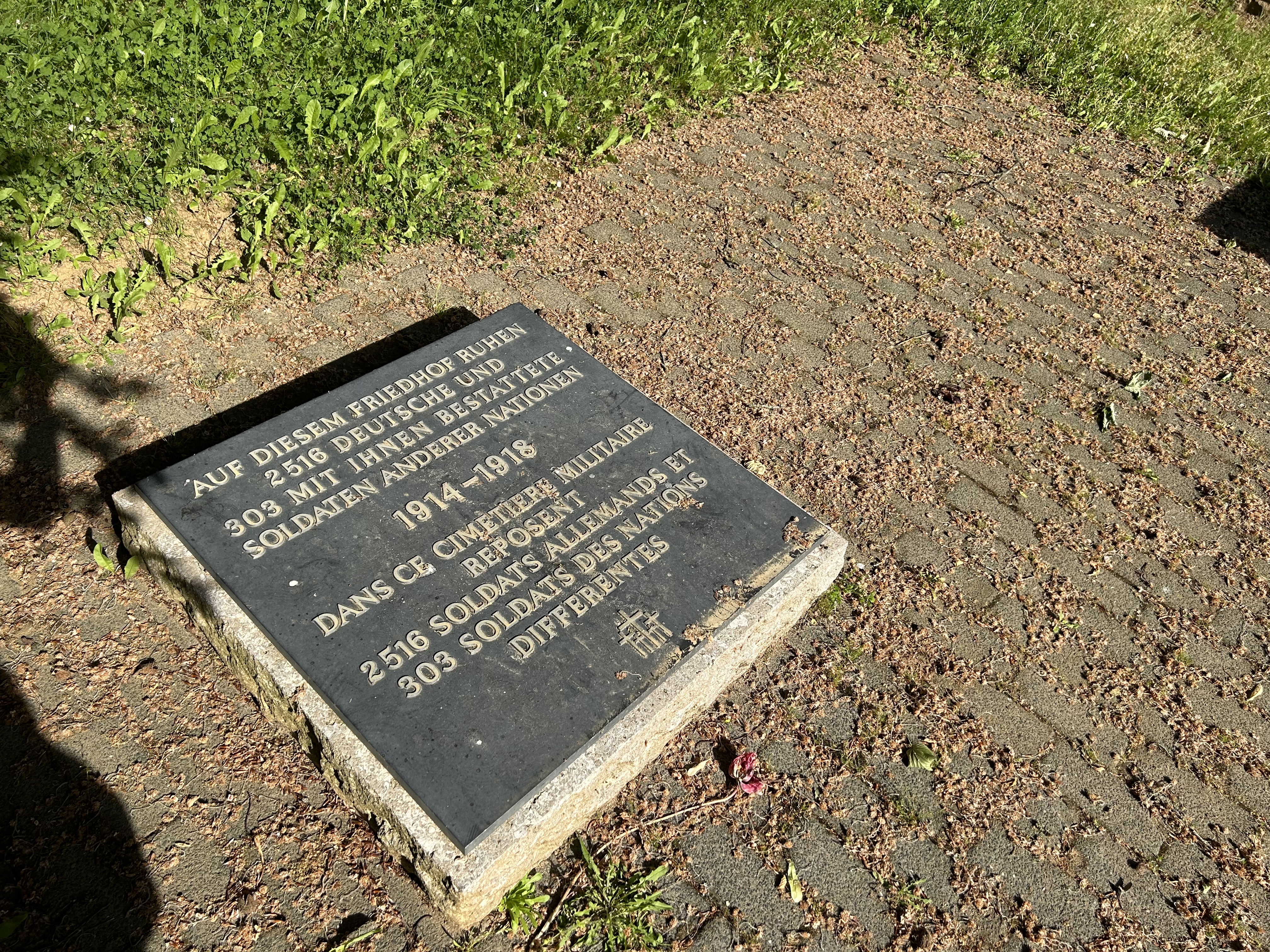 Ce cimetière est très spécial. Non seulement des soldats allemands sont enterrés dans ce cimetière, mais aussi des soldats français, russes, autrichiens, italiens, britanniques et belges. Au total, 2 819 soldats y sont enterrés. Parmi eux, 2 516 sont des soldats allemands. Tous les soldats qui se trouvaient ici sont morts pendant la Première Guerre mondiale.