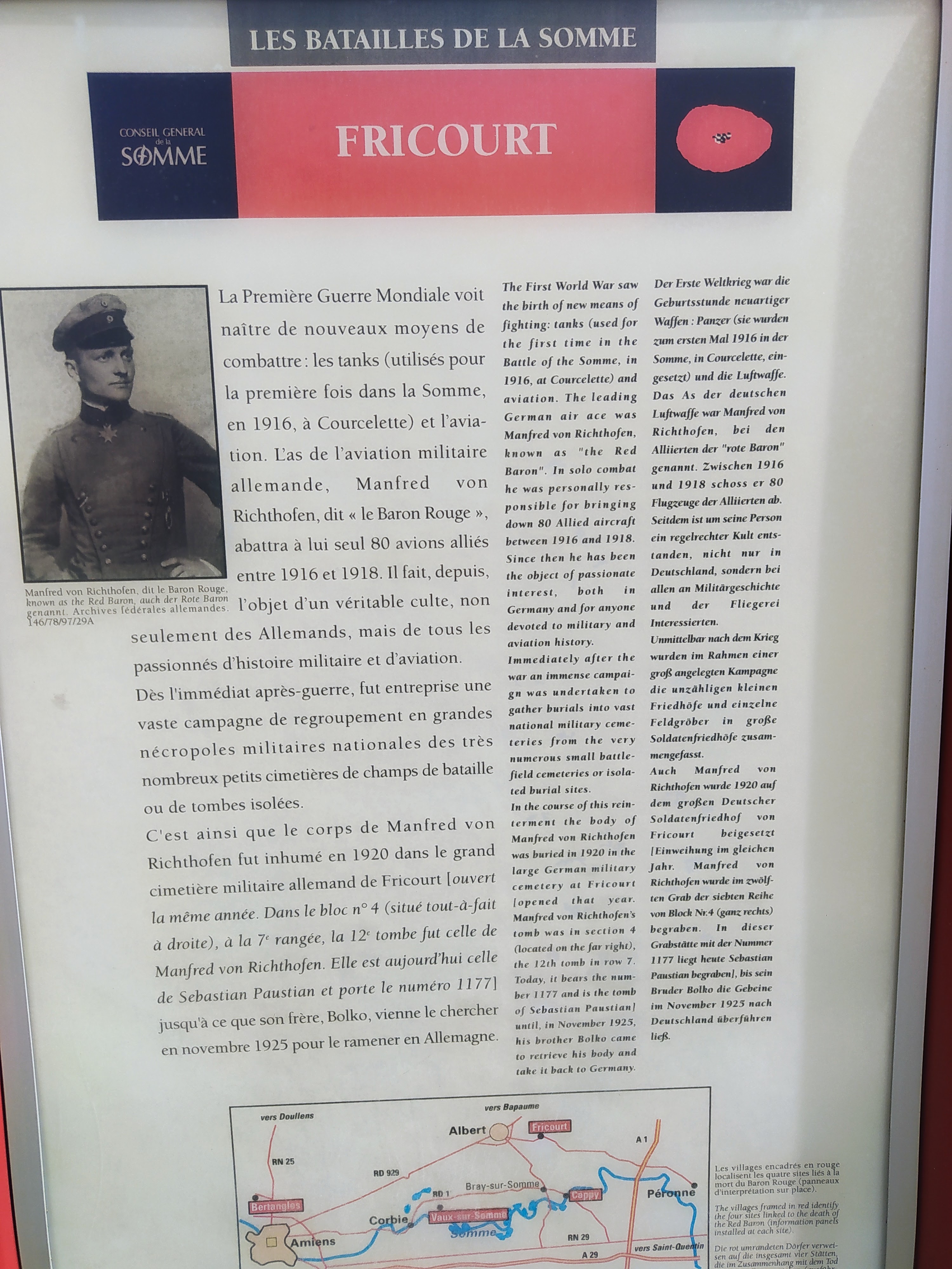 Manfred von Richthofen, le baron rouge, a été enterré pendant plusieurs années dans ce cimetière. Les restes ont ensuite été transférés à Berlin et ont finalement fini à Wiesbaden dans la tombe familiale.