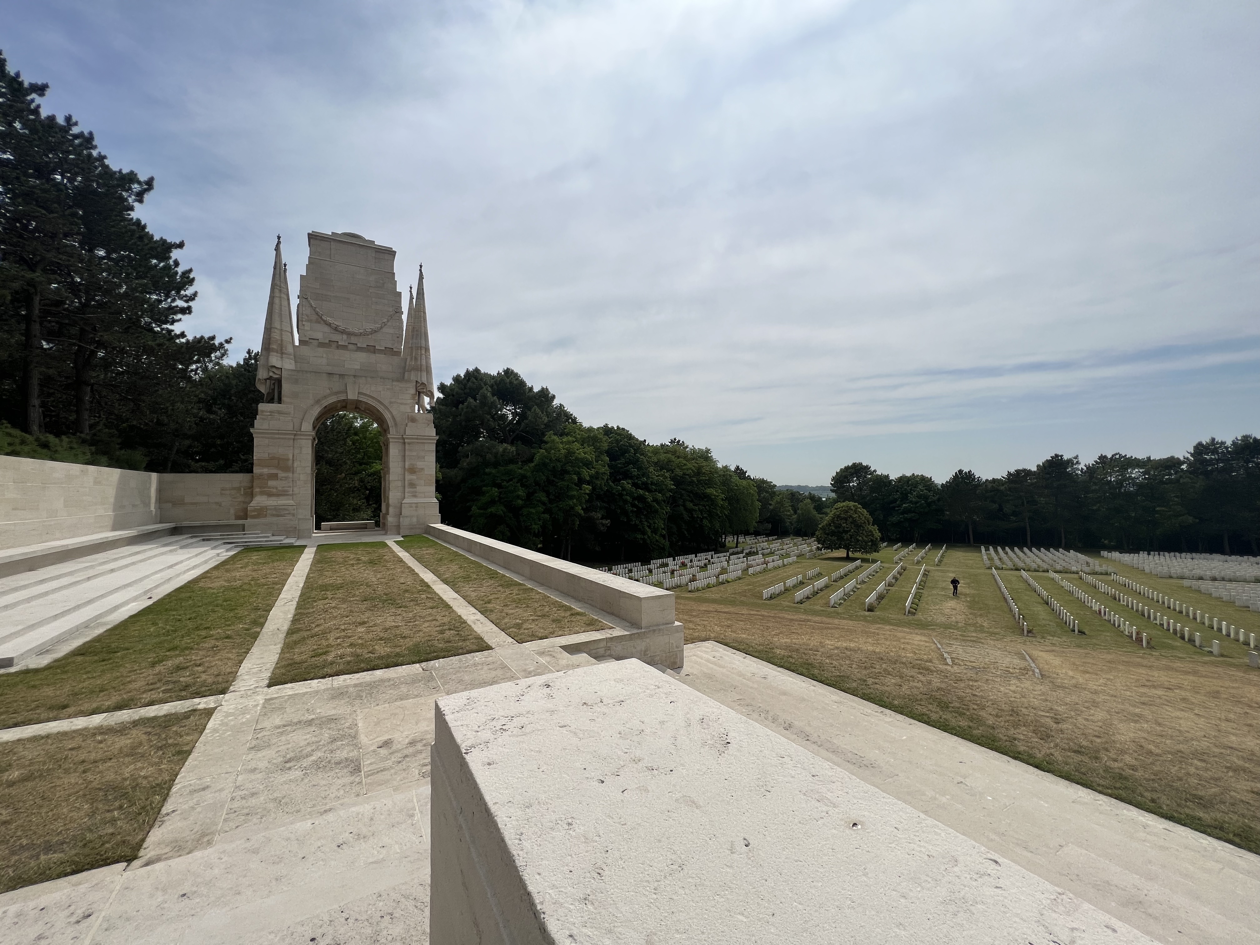 Un lieu de mémoire chargé d'histoire et d'émotions. Il s'agit du plus grand mémorial et cimetière anglais de la grande guerre en France avec plus de 11500 tombes aux magnifiques stèles gravées. Très bien entretenu, facile d'accès avec un stationnement à proximité de l'entrée.