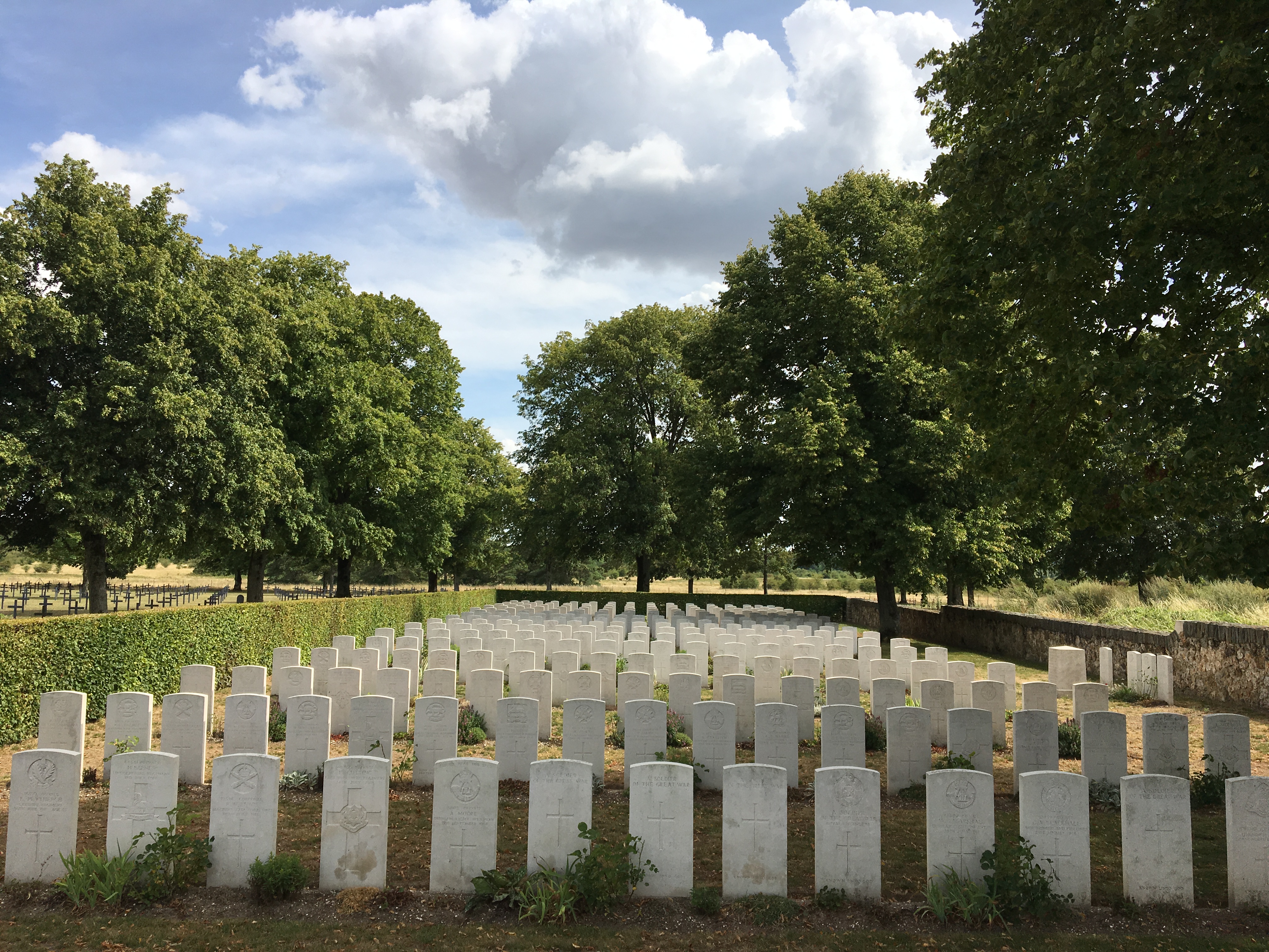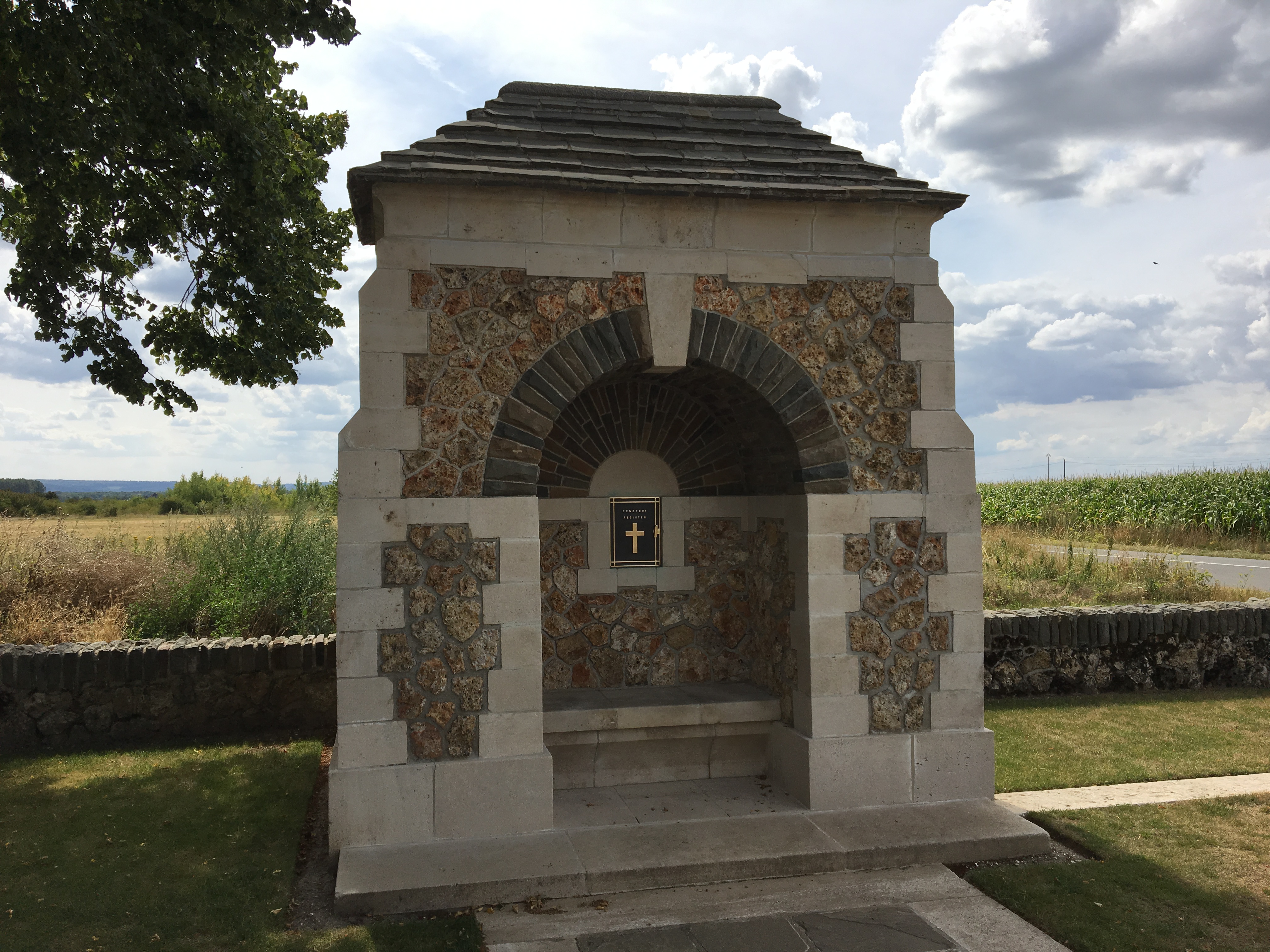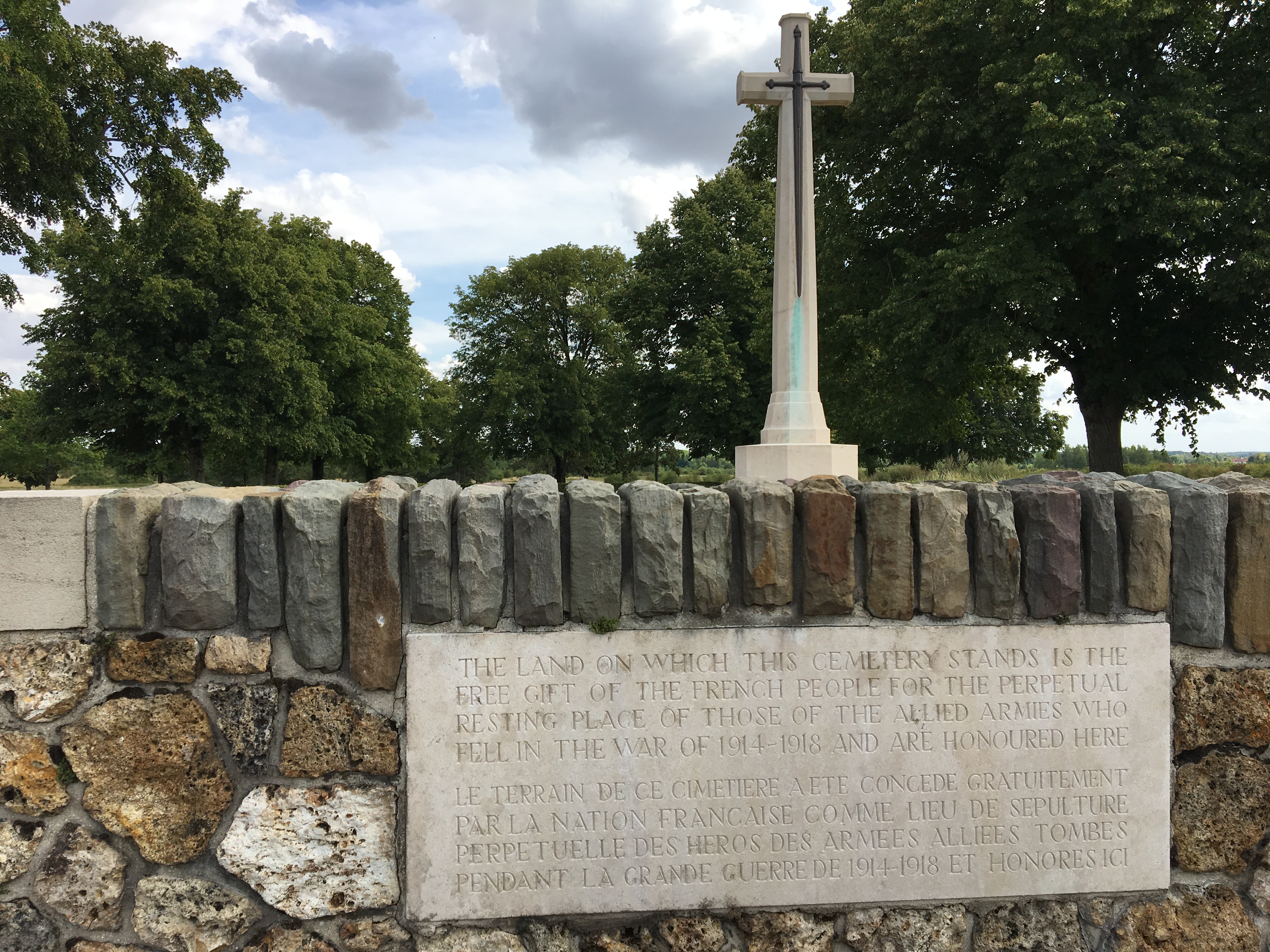Petit cimetière anglais WW1 situé à côté des terrains militaires du camp du village , accessible et visible depuis la route où repose environ 300 soldats tombés lors des combats de la deuxième bataille de la Marne et de l’Aisne, à voir...